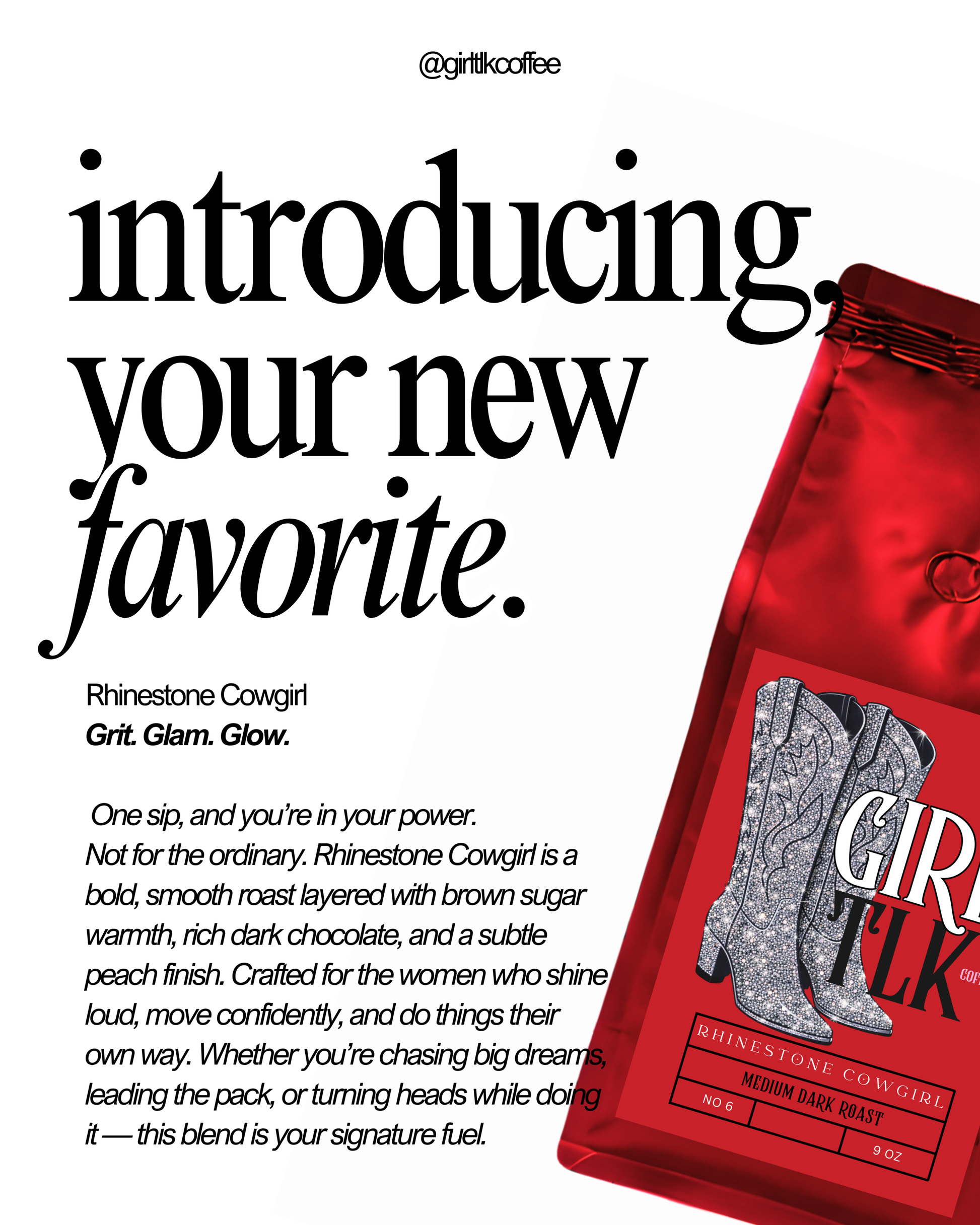 Not for the ordinary. Rhinestone Cowgirl is a bold, smooth roast layered with brown sugar warmth, rich dark chocolate, and a subtle peach finish. Crafted for the women who shine loud, move confidently, and do things their own way. Whether you’re chasing big dreams, leading the pack, or turning heads while doing it — this blend is your signature fuel.